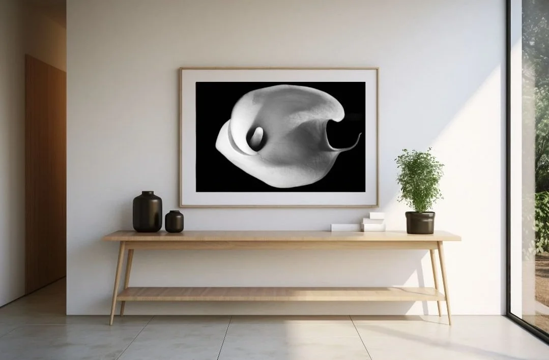 Perfetta per ambienti moderni, interni di design, spazi minimalisti o contesti professionali come studi, showroom, boutique, hotel e gallerie, questa stampa fine art dona un’atmosfera di raffinata sobrietà. La palette monocromatica permette un abbinamento armonico con arredi contemporanei, stili nordici, estetica wabi-sabi o pareti d’arte dal gusto essenziale.